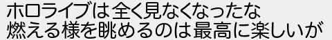 ホロライブは全く見なくなったな 燃える様を眺めるのは最高に楽しいが