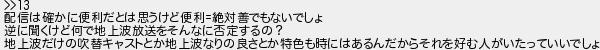 配信は確かに便利だとは思うけど便利絶対善でもないでしょ 逆に聞くけど何で地上波放送をそんなに否定するの? 地上波だけの吹替キャストとか地上波なりの良さとか特色も時にはあるんだからそれを好む人がいたっていいでしょ