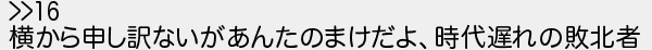 横から申し訳ないがあんたのまけだよ時代遅れの敗北者