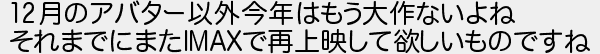 月のアバター以外今年はもう大作ないよね それまでにまたで再上映して欲しいものですね