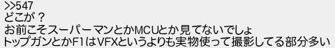 どこが? お前こそスーパーマンとかとか見てないでしょ トップガンとかはというよりも実物使って撮影してる部分多い