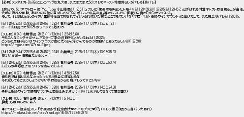 39: [] 2025/11/24(月) 04:05:06.94 ID:0 【必見】メンタリストDaiGoことメンヘラ松丸大吾、またまたまた5chスレでネトスト粘着荒らしがバレる【身バレ】 以前より、5chアウトロー板「YouTuber小山恵吾🗿」スレに「統失ホモチョンヒトモドキ🧑🏻🦱」と呼ばれる粘着ネトスト反日荒らしが出没。 会話の流れや言動、あまりの語彙の香ばしさや「Xのポエムとの共通点」等からスレ民に何度も中身がDaiGoだとバレる。 そして、何度もDaiGoのイタい画像等を当て擦られてイジメられ続けた末にどこでもワンパな「学歴・年収・高級ワインマウント」に逃げだして、また完全身バレ🤣 [🧑🏻🦱] 0234 名無番長 2025/11/13(木) 12:39:12.11 さーて先日買った600万のワインでも飲むか [スレ民] 0240 名無番長 2025/11/13(木) 12:54:16.60 今もこんなクソダサAIサムネでライブ中の反日チョンがいるね🤭 こっちの反日チョンはワイングラスが空にたくさん浮かんでるのが面白いと思ったらしい🥶 https://imgur.com/A7rsaLE.jpeg [🧑🏻🦱] 0249 名無番長 2025/11/13(木) 13:03:35.93 僕はいちおー旧帝出だからねー [🧑🏻🦱] 0259 名無番長 2025/11/13(木) 13:58:53.44 お主らの年収以上のワインを嗜んでおるぞ [スレ民] 0279 名無番長 2025/11/13(木) 14:38:17.50 俺も最初は信じられなかったけどもう完全に確定したな それにしてもごまかしようがない芋野郎さからの身バレってすごいなw [🧑🏻🦱] 0280 名無番長 2025/11/13(木) 14:38:24.08 子鹿と高級ワインで優雅なランチと洒落込みますか(※身バレ火消しできなくて開き直り) [スレ民] 0305 名無番長 2025/11/13(木) 15:14:03.11 擁護コメは明らかに本人 ◆アウトロー板当該スレ:『汁屁過多性脱水症状❤オイルブッヒ❤37』(※レス番200頃から身バレ大暴れ) https://medaka.5ch.net/test/read.cgi/4649/1762490978 http://medaka.5ch.net/test/read.cgi/4649/1739158366/39