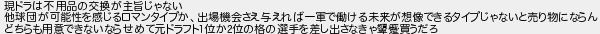 現ドラは不用品の交換が主旨じゃない 他球団が可能性を感じるロマンタイプか出場機会さえ与えれば一軍で働ける未来が想像できるタイプじゃないと売り物にならん どちらも用意できないならせめて元ドラフト位か位の格の選手を差し出さなきゃ買うだろ