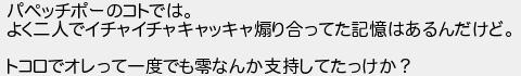パペッチポーのコトでは よく二人でイチャイチャキャッキャ煽り合ってた記憶はあるんだけど トコロでオレって一度でも零なんか支持してたっけか?