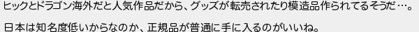 ヒックとドラゴン海外だと人気作品だからグッズが転売されたり模造品作られてるそうだ 日本は知名度低いからなのか正規品が普通に手に入るのがいいね