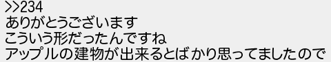 ありがとうございます こういう形だったんですね アップルの建物が出来るとばかり思ってましたので