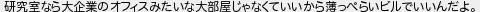 研究室なら大企業のオフィスみたいな大部屋じゃなくていいから薄っぺらいビルでいいんだよ
