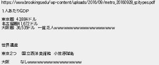 91: (芋) [] 2017/08/04(金) 23:51:35.73 ID:HK3SwjMn https://www.brookings.edu/wp-content/uploads/2016/09/metro_20160928_gcitypes.pdf 1人あたりGDP 東京圏 43,884 ドル 名古屋圏41,672 ドル 大阪圏 36,535ドル ←貧乏人wwwwwwwwwwwwwwwwwww 世界遺産 東京2つ 国立西洋美術館 小笠原諸島 大阪 なしwwwwwwwwwwwwwwwww http://egg.5ch.net/test/read.cgi/develop/1501831768/91