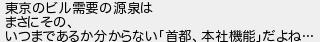 東京のビル需要の源泉は まさにその いつまであるか分からない首都本社機能だよね