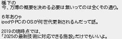 橋下の 今万博の概要を決める必要は無いってのは全くその通り 6年ありゃ やのが何世代更新されるんだって話 の現時点では の最新技術に対応できる施設だけでもいいよ