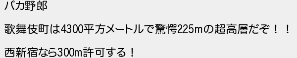バカ野郎 歌舞伎町は平方メートルで驚の超高層だぞ!! 西新宿なら許可する!