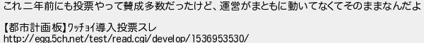 これ二年前にも投票やって賛成多数だったけど運営がまともに動いてなくてそのままなんだよ 都市計画板導入投票スレ