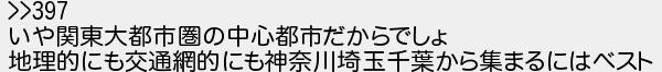 いや関東大都市圏の中心都市だからでしょ 地理的にも交通網的にも神奈川埼玉千葉から集まるにはベスト