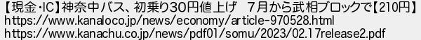 現金神奈中バス初乗り30円値上げ 7月から武相ブロックで円