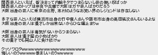 関西芸人といえば皆決まって内輪ネタでつまらないし芸の無い奴ばっか 関西芸人のトップは奈良や兵庫で大阪はガヤ芸人ばかりだろう 大阪出身の芸人に東京の北野志村のようなお笑い界のレジェンドは存在しない 多才な芸人といえば横浜市出身の竹中直人さんや調布市出身の高田純次さんもいるよな 大阪出身の芸人は漫才しか出来ないからひな壇止まり 大阪出身の芸人は毒気がないからつまらない 大阪芸人は漫才屋の小物ばかり その漫才でも岡山人に負け続け クッソワロタ 悔しいのう羨ましいのう