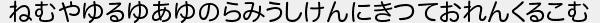 ねむやゆるゆあゆのらみうしけんにきつておれんくるこむ