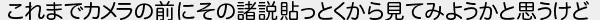 これまでカメラの前にその諸説貼っとくから見てみようかと思うけど