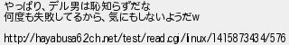 164: [sage] 2014/11/26(水) 12:16:06.91 ID:P4+IMIbS やっぱり、デル男は恥知らずだな 何度も失敗してるから、気にもしないようだw http://hayabusa6.2ch.net/test/read.cgi/linux/1415873434/576 http://mao.5ch.net/test/read.cgi/linux/1414908708/164