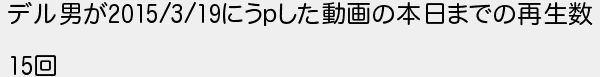 469: [sage] 2017/10/19(木) 02:17:24.95 ID:19bn5hFT デル男が2015/3/19にうpした動画の本日までの再生数 15回 http://mao.5ch.net/test/read.cgi/linux/1414908708/469