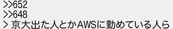 653: [sage] 2020/03/11(水) 22:03:40.42 ID:WyA2ESjP >>652 >>648 > 京大出た人とかAWSに勤めている人ら http://mao.5ch.net/test/read.cgi/linux/1428895660/653