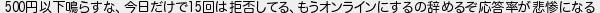 円以下鳴らすな今日だけで回は拒否してるもうオンラインにするの辞めるぞ応答率が悲惨になる