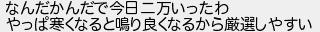 なんだかんだで今日二万いったわ やっぱ寒くなると鳴り良くなるから厳選しやすい