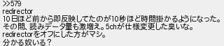 653: [] 2023/08/07(月) 11:18:13.66 ID:xjWNfHbr0 >>579 redirector 10日ほど前から即反映してたのが10秒ほど時間掛かるようになった。 その間、読みデータ量も激増え。5chが仕様変更した臭いな。 redirectorをオフにした方がマシ。 分かる奴いる? http://egg.5ch.net/test/read.cgi/software/1659768310/653