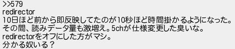 653: [] 2023/08/07(月) 11:18:13.66 ID:xjWNfHbr0 >>579 redirector 10日ほど前から即反映してたのが10秒ほど時間掛かるようになった。 その間、読みデータ量も激増え。5chが仕様変更した臭いな。 redirectorをオフにした方がマシ。 分かる奴いる? http://egg.5ch.net/test/read.cgi/software/1659768310/653