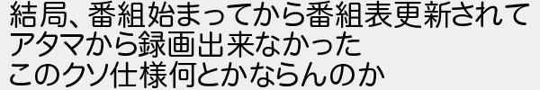 結局番組始まってから番組表更新されて アタマから録画出来なかった このクソ仕様何とかならんのか