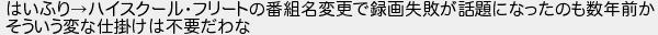 はいふりハイスクールフリートの番組名変更で録画失敗が話題になったのも数年前か そういう変な仕掛けは不要だわな