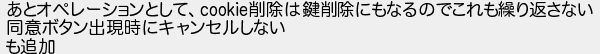 あとオペレーションとして削除は鍵削除にもなるのでこれも繰り返さない 同意ボタン出現時にキャンセルしない も追加
