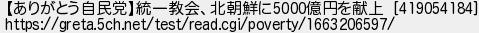17: [sage] 2022/09/15(木) 11:42:24.64 【ありがとう自民党】統一教会、北朝鮮に5000億円を献上 [419054184] https://greta.5ch.net/test/read.cgi/poverty/1663206597/ http://egg.5ch.net/test/read.cgi/streaming/1663166318/17