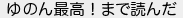 802: [sage] 2022/10/12(水) 09:54:28.22 ゆのん最高!まで読んだ http://egg.5ch.net/test/read.cgi/streaming/1663264346/802