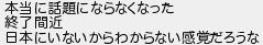 本当に話題にならなくなった 終了間近 日本にいないからわからない感覚だろうな