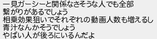 一見ガーシーと関係なさそうな人でも全部 繋がりがあるでしょう 相乗効果狙いでそれぞれの動画人数も増えるし 青汁なんかそうでしょう やばい人が後ろにいるんだよ