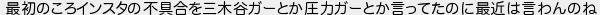 最初のころインスタの不具合を三木谷ガーとか圧力ガーとか言ってたのに最近は言わんのね