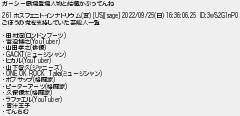 921: (ワッチョイW 1e11-+9dP) [sage] 2022/09/25(日) 21:15:23.79 ID:aU6E3l6d0 ガーシー劇場登場人物と結構かぶってんね 261 ホスフェニトインナトリウム(茸) [US][sage] 2022/09/25(日) 16:36:06.25 ID:3wS2G1nP0 ごぼうの党を支持していた芸能人一覧 ・田村淳(ロンドンブーツ) ・宮迫博之(YouTuber) ・山田孝之(俳優) ・GACKT(ミュージシャン) ・ヒカル(YouTuber) ・山下智久(ジャニーズ) ・ONE OK ROCK Taka(ミュージシャン) ・ボブサップ(格闘家) ・ピーターアーツ(格闘家) ・久保優太(格闘家) ・ラファエル(YouTuber) ・青汁王子 ・てんちむ http://egg.5ch.net/test/read.cgi/streaming/1663276565/921