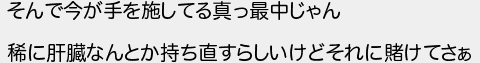 そんで今が手を施してる真っ最中じゃん 稀に肝臓なんとか持ち直すらしいけどそれに賭けてさぁ
