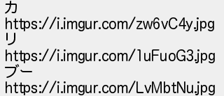 55: [sage] 2022/09/21(水) 22:01:04.72 カ https://i.imgur.com/zw6vC4y.jpg リ https://i.imgur.com/1uFuoG3.jpg ブー https://i.imgur.com/LvMbtNu.jpg http://egg.5ch.net/test/read.cgi/streaming/1663758564/55
