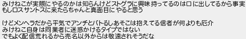 みけねこが実際にやるのかは知らんけどストグラに興味持ってるのは口に出してるから事実 もしロスサントスに来たらちゃんと真面目にやると思う けどメンヘラだから平気でアンチとバトるしあそこは抱えてる信者が何よりも厄介 みけねこ自身は同業者に迷惑かけるタイプではない でもよく配信荒れるから売名以外からは敬遠されそうだな
