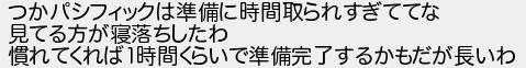 つかパシフィックは準備に時間取られすぎててな 見てる方が寝落ちしたわ 慣れてくれば時間くらいで準備完了するかもだが長いわ