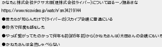 4: [] 2023/11/24(金) 06:55:09.92 ID:x28D4g0C0 かなたと株式会社テクサ太田(現株式会社ライバー)について語る一ノ瀬あきな https://www.nicovideo.jp/watch/sm34219144 ●君たちが知らんだけで(ライバーの)スカイプ会議に普通にいる ●枠外で何度も話をした ●やっぱ繋がってたのかって何年も前(約5年前)から(かねたさんは)太田さんの会議にもいた ●かねたさんは全然しゃべらない http://egg.5ch.net/test/read.cgi/streaming/1700775708/4