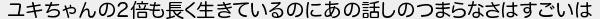 ユキちゃんの2倍も長く生きているのにあの話しのつまらなさはすごいは
