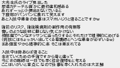 653: (スフッ Sd9f-UC0k) [sage] 2024/01/11(木) 14:09:49.03 ID:IyoVt82Ud 大先生氏のライブ見ました 尿道カテーテル確かに最初違和感ある あれずーっと小便出さないでいると 下腹部がパンパンに膨れて笑えます あと入院中患者の仕事はスマホいじりと寝ることですかw 術前のリスク、術後鎮痛剤の副作用の有無等 脅しのような説明に動じない気にかけない 相部屋でヘンなオッサンに当ったりするとそれだけで精神的にめげる (病院にはちょっかい出してくる看護師とヘンな患者が必ずいるw) まあ個室やから精神的に楽 そこは恵まれてる 入院中は隙あらば寝ること 生きていくための手術ですから昔と違って 今どきの医師は一日でも早く社会復帰をと考える ここはいがいと盲点に なので仕事を早く入れたのは大正解 http://egg.5ch.net/test/read.cgi/streaming/1704020536/653