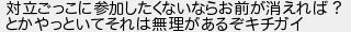 対立ごっこに参加したくないならお前が消えれば? とかやっといてそれは無理があるぞキチガイ