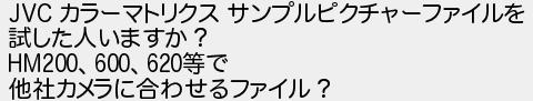 36: [] 2017/11/18(土) 18:47:17.01 ID:OTyJ/FzP JVC カラーマトリクス サンプルピクチャーファイルを 試した人いますか? HM200、600、620等で 他社カメラに合わせるファイル? http://kizuna.5ch.net/test/read.cgi/vcamera/1415836623/36